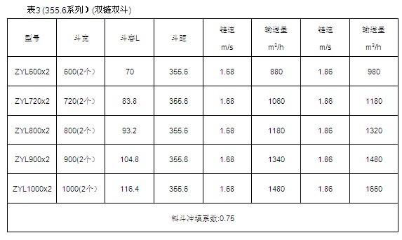 特別提示:1、提升量超過800m3/h的提升機(jī)建議采用雙鏈雙斗。