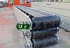 平形膠帶機的支架采用鋼板折彎結(jié)構(gòu),即美觀又牢固;驅(qū)動裝置采用擺線針輪減速機,節(jié)省占地面積;張緊方式為中間垂直螺旋張緊,卸袋機構(gòu)由旋臂立式膠帶機、電推桿和支架三部分組成,當(dāng)不需要水泥袋從中間位置卸下時,立式膠帶機處于包裝膠帶機的側(cè)邊;當(dāng)需要水泥袋從中間位置卸下時,由電動推桿拉動立式膠帶機使其擺動與包裝膠帶機縱向成交叉位置,并開動立式膠帶機即可。