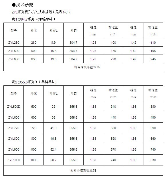 特別提示:1、提升量超過800m3/h的提升機(jī)建議采用雙鏈雙斗。