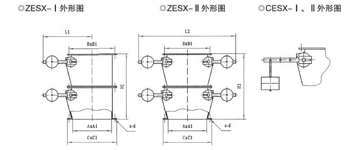 鎖氣翻板卸灰閥為上下交替開(kāi)閉,自動(dòng)復(fù)位機(jī)構(gòu)。分為:z為重錘自動(dòng)復(fù)位機(jī)構(gòu),具有運(yùn)轉(zhuǎn)平穩(wěn)、節(jié)能,卸灰量大、小可調(diào),卸灰、鎖氣可靠之功能。C為吊錘自動(dòng)復(fù)位機(jī)構(gòu),具有占地面積省、節(jié)能,卸灰調(diào)節(jié)方便,卸灰、鎖氣可靠之功能。B為凸輪、連桿傳動(dòng),重量自動(dòng)復(fù)位機(jī)構(gòu);D為凸輪、連桿傳動(dòng),彈簧自動(dòng)復(fù)位機(jī)構(gòu),具有結(jié)構(gòu)緊湊、設(shè)計(jì)合理、運(yùn)轉(zhuǎn)平穩(wěn),卸灰、鎖氣可靠。是各種無(wú)粘度的固體粉料,小于Φ10mm的顆粒料,晶體料,團(tuán)狀料,給、卸料工況的理想設(shè)備。Ⅰ型為單板卸料,Ⅱ型為雙板卸料。