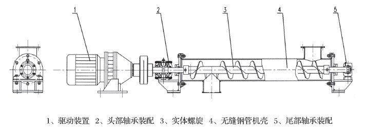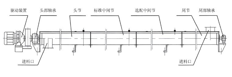 一臺螺旋機(jī)通常按驅(qū)動(dòng)裝置、頭節(jié)、若干標(biāo)準(zhǔn)中部節(jié),選配中間節(jié),尾節(jié)順序組成,除頭節(jié)機(jī)殼和選配節(jié)外,各節(jié)螺旋及機(jī)殼均具有互換性,在出料端螺旋有清料裝置,安裝時(shí)注意位置。